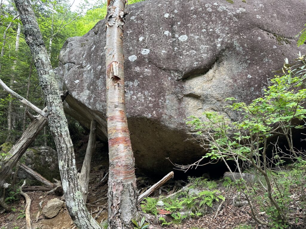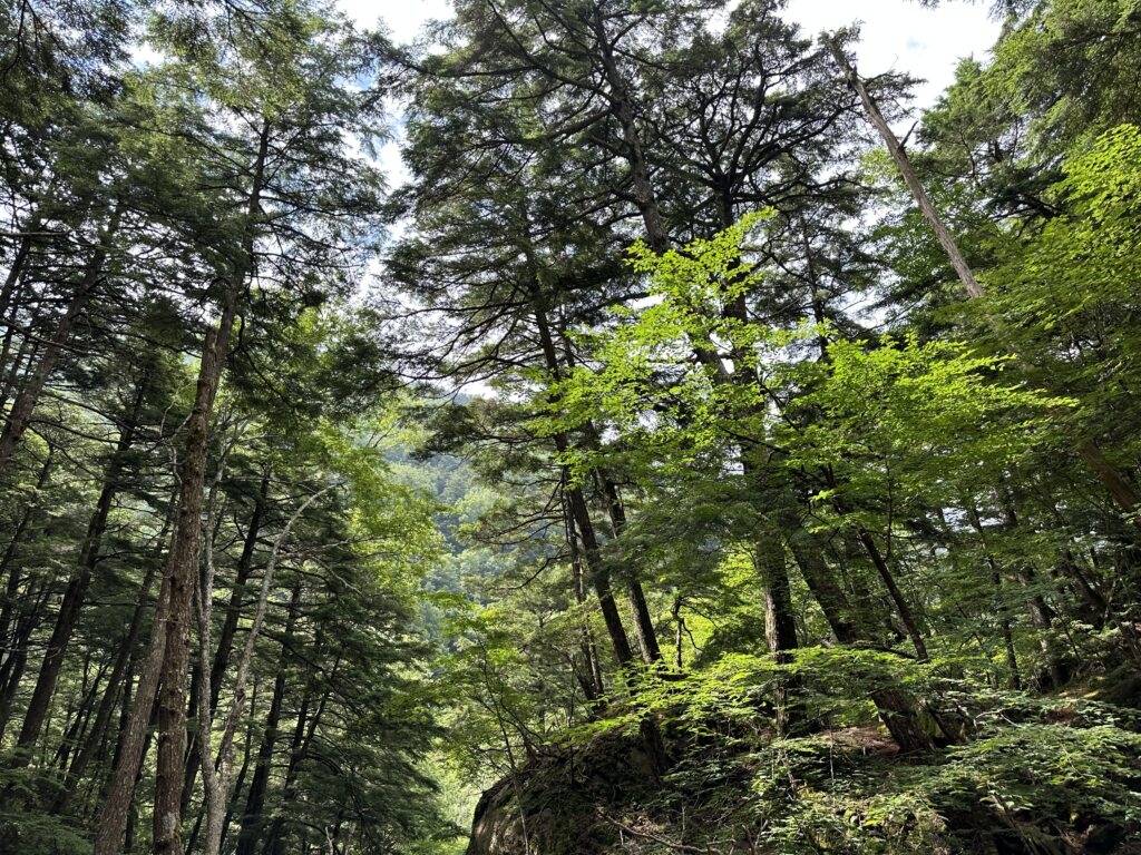 登山口となる瑞牆山荘はアクセスが良く、駐車場やトイレも整備されています。朝の空気はひんやりとしていて、森の中に入るとすぐに静かな世界が広がりました。序盤はなだらかな樹林帯。木漏れ日の中を歩きながら、体をゆっくりと温めていきます。急登というほどではないものの、徐々に高度を上げていく感覚が心地よく、呼吸と歩幅を一定に保つことを意識しました。