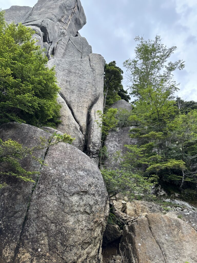 瑞牆山の魅力は、なんといっても巨岩の風景。大きな花崗岩が点在し、まるで自然が作ったアートの中を歩いているような感覚になります。鎖場はそれほど多くありませんが、足場を選びながら慎重に進む場面もあり、集中力が必要です。振り返ると奥秩父の山並みが広がり、思わず足を止めて景色を眺めてしまいました。